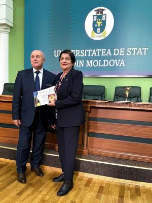 In the first part of the event, some distinctions obtained by researchers of MSU at various invention exhibitions, organized recently in Romania, have been handed out. Thus, the author collective formed by Elena Zubcov, Natalia Zubcov, Laurenţia Ungureanu, Nina Bagrin, Liviu-Dan Miron, Denis Bulat, Petru Ciorba, Lucia Bileţchi and Nadejda Andreev received the gold medal, which was awarded by the Inventions International Exhibition INVENTICA 2023, the 27th edition, as sign of appreciation of the invention „Method for pond farming of fish producers of cyprinids”. The exhibition was held at the Gheorghe Asachi Technical University form Iași between 21 and 23 June 2023. The gold medal of the  International Exhibition of Research, Innovations and Inventions PRO INVENT 2023, the 21th edition (25-27 October 2023, Cluj-Napoca) for the invention „Universal mobile complex for fish breeding” was handed out to the researcher team Oleg Crepis, Dumitru Bulat, Elena Zubcov and Denis Bulat.