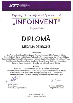 La ediția a 17-a a Expoziției Internaționale Specializate ”INFOINVENT”, care s-a desfășurat în perioada 17-20 noiembrie 2021 la Chișinău în format online, Institutul de Zoologie a participat cu lucrări la compartimentul I: ”Invenții și soiuri de plante, design industrial” și compartimentul II: ”Proiecte de cercetare și inovare”. Juriul, condus de mem.cor. Svetlana Cojocaru, vicepreședinte al Academiei de Științe a Moldovei, a apreciat înalt toate lucrările prezentate de Institutul de Zoologie: