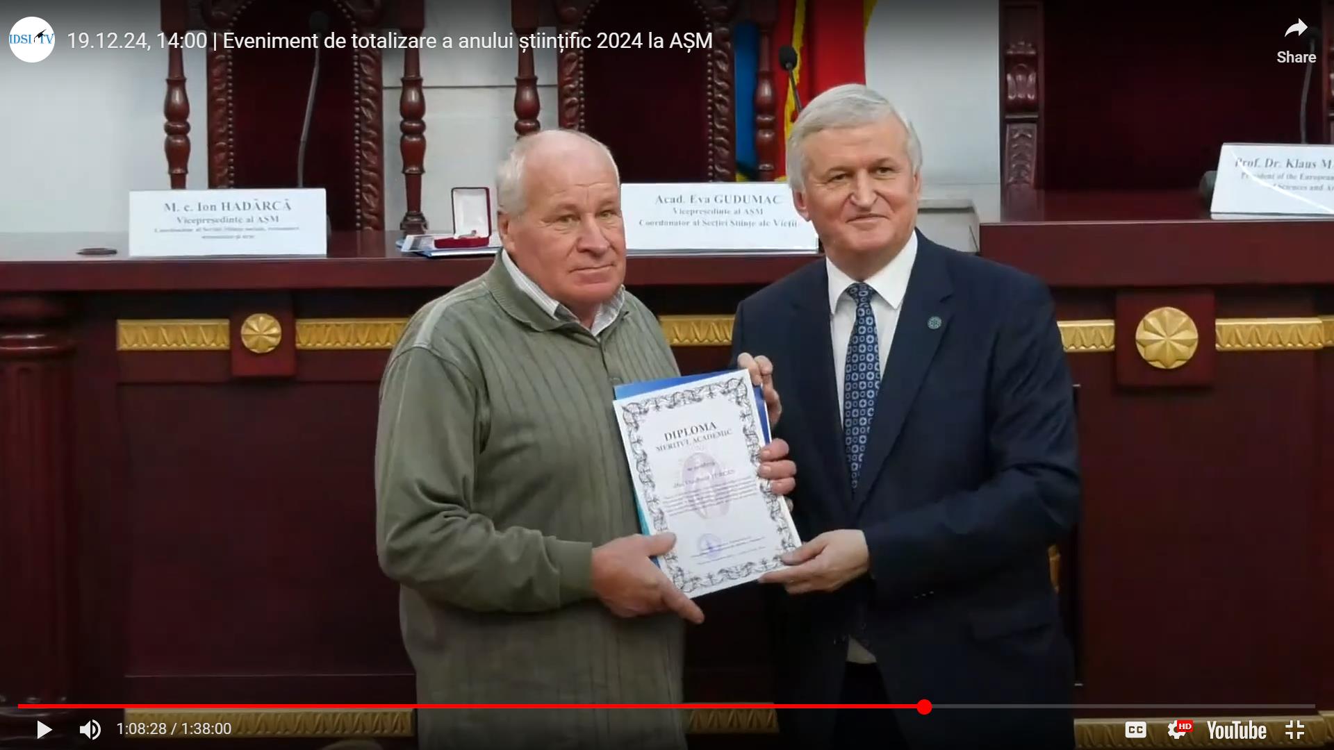Distincțiile au fost înmânate în ședințele festive ale AȘM din 12 noiembrie (https://asm.md/academia-romana-si-academia-de-stiinte-moldovei-au-lansat-deceniul-international-al-stiintelor) și 19 decembrie 2024 (https://asm.md/eveniment-festiv-la-academia-de-stiinte-moldovei-totalizarea-anului-stiintific-2024).