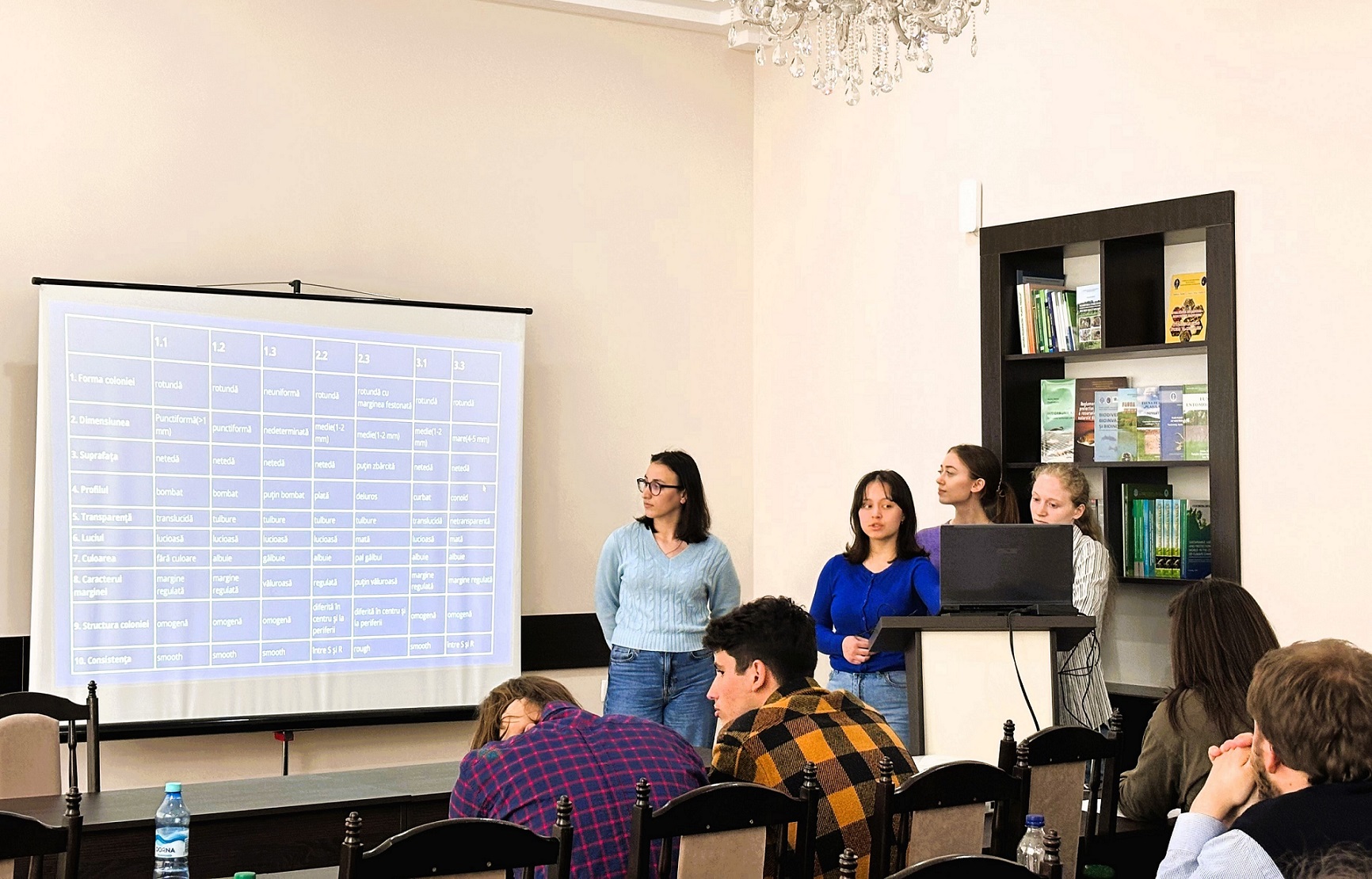 Pe parcursul vizitei studenții abia inițiați în universul fascinant al științelor biologice au avut posibilitatea de a fi veritabili cercetători științifici, prezentând în sala de ședințe a Institutului de Zoologie proiectele sale de cercetare, realizate pe parcursul celui de al doilea semestru al anului de studii 2023-2024 sub îndrumarea dr. Moldovan Anna, lector universitar.