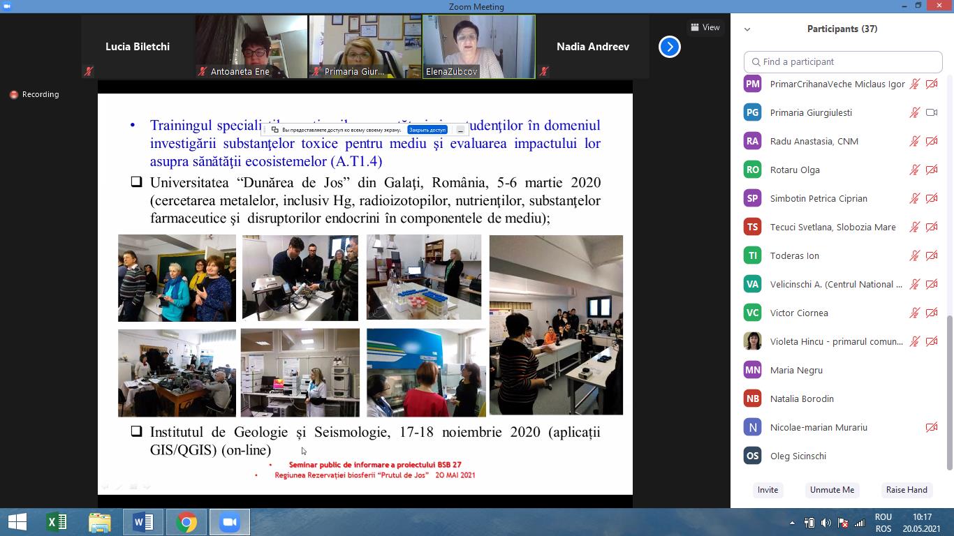 Institutul de Zoologie a organizat la 20 mai 2021, în format online, un seminar public de informare în cadrul proiectului BSB27 “Reţea de cooperare interdisciplinară în bazinul Mării Negre pentru monitorizarea comună durabilă a migrației compușilor toxici în mediu, evaluarea îmbunătățită a stării ecologice și a impactului substanțelor dăunătoare asupra sănătății umane, și prevenirea expunerii populației” – MONITOX.